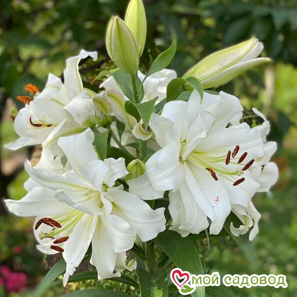 Образует крупные, до 30 см в диаметре, белые махровые душистые цветки с завернутыми вниз лепестками. Высота растения от 130 до 150 см. Цветет лилия в июле-августе. Уход за лилиями включает в себя прополки, поливы, рыхления, подкормки, борьбу с болезнями и вредителями. Поливают лилии в период цветения, поддерживая почву в увлажненном состоянии. Чтобы избежать пересыхания и перегрева почву мульчируют перегноем или торфом слоем в 5-6 см. Лилии хорошо отзываются на подкормки. Первую подкормку проводят весной после схода снега, разбрасывая по поверхности почвы азотные удобрения. Во время бутонизации растения поливают растворенной в воде аммиачной селитрой, непосредственно перед цветением использую фосфорно-калийные удобрения в жидком виде, в конце лета, но не позднее середины августа, лилии подкармливают фосфором и калием. Выращивать лилии на одном месте дольше 3-4 лет крайне нежелательно: луковица нарастает, становится рыхлой, растениям становится тесно по соседству. На 5 -6 год заметно снижается высота цветоноса, количество бутонов и значит, луковица истощена, а это может привести к заболеваниям и гибели растения. Осенью, когда надземная часть растения отмерла, стебель обрезают на высоте 15 см от поверхности почвы, гнездо выкапывают целиком, отделяют от материнской луковицы детки и высаживают их на доращивание. Саму материнскую луковицу пересаживают на новое место. В нашем интернет-магазине вы сможете купить Лилии Так же возможно вас заинтересуют Лилия-дерево Пурпл Принц и Лилия (ЛО-гибрид) Пинк Хевен